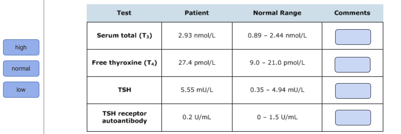 Solved Test Patient Normal Range Comments Serum Total T3 Chegg Com